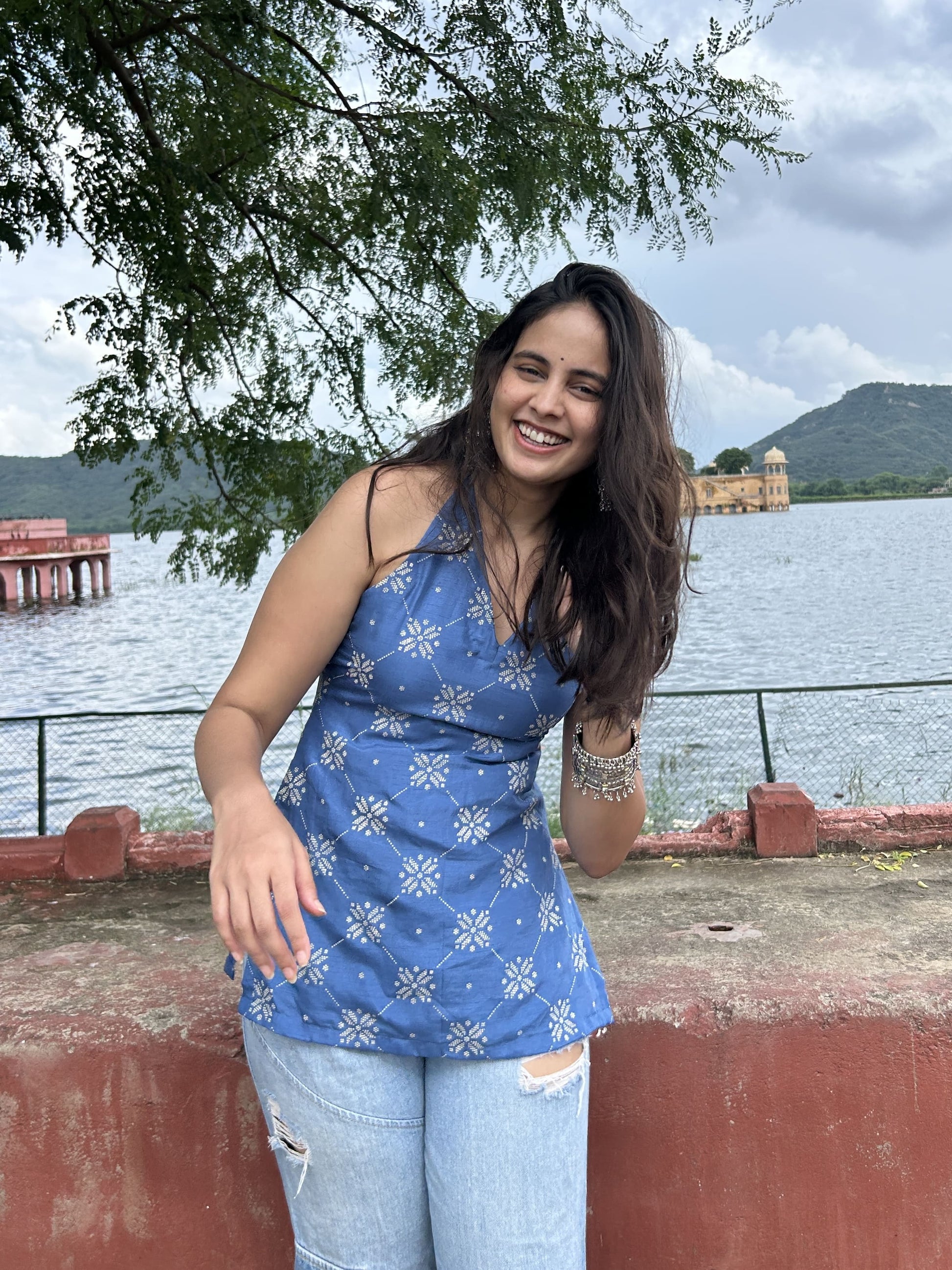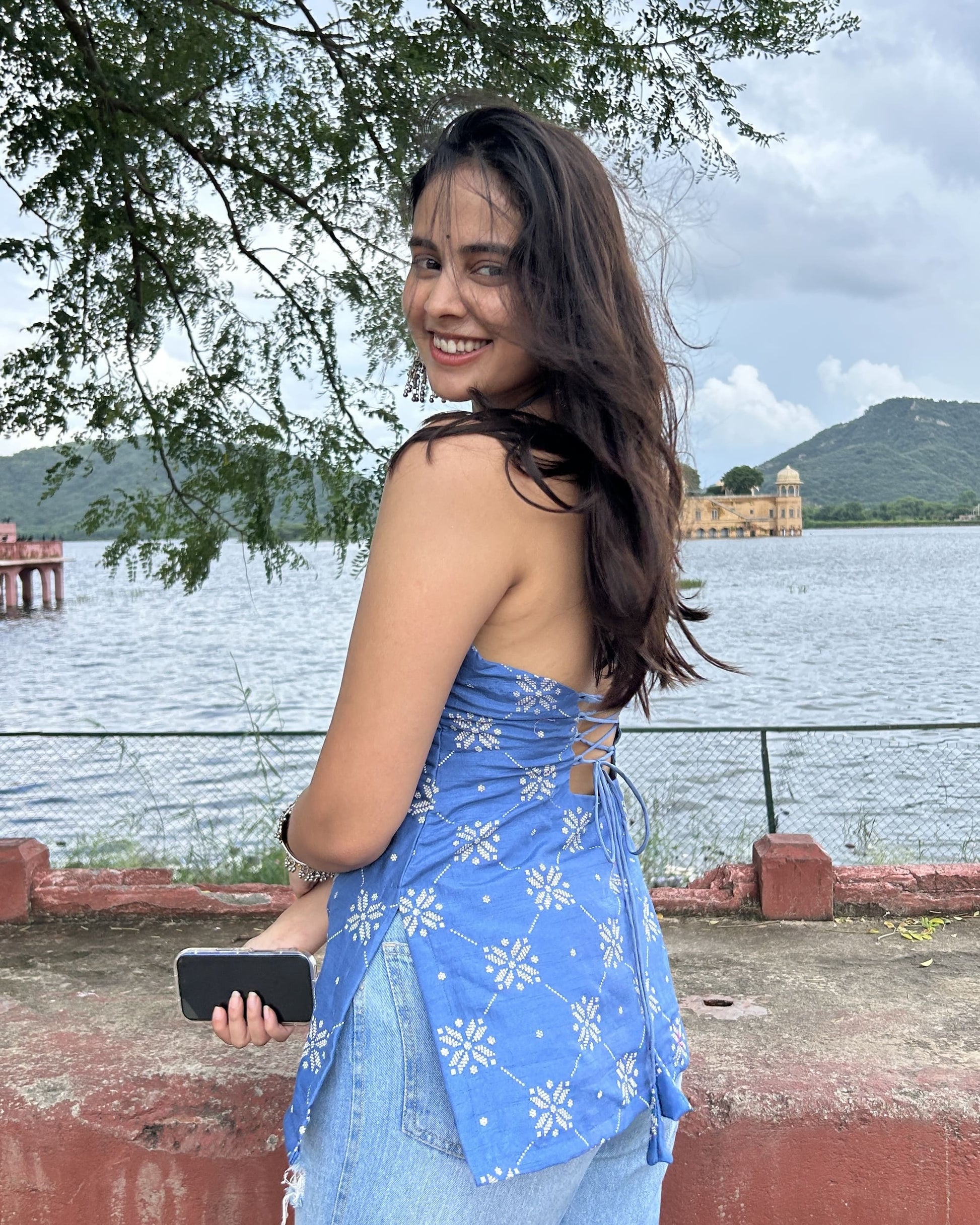 Blue Silk Halterneck Short Kurti