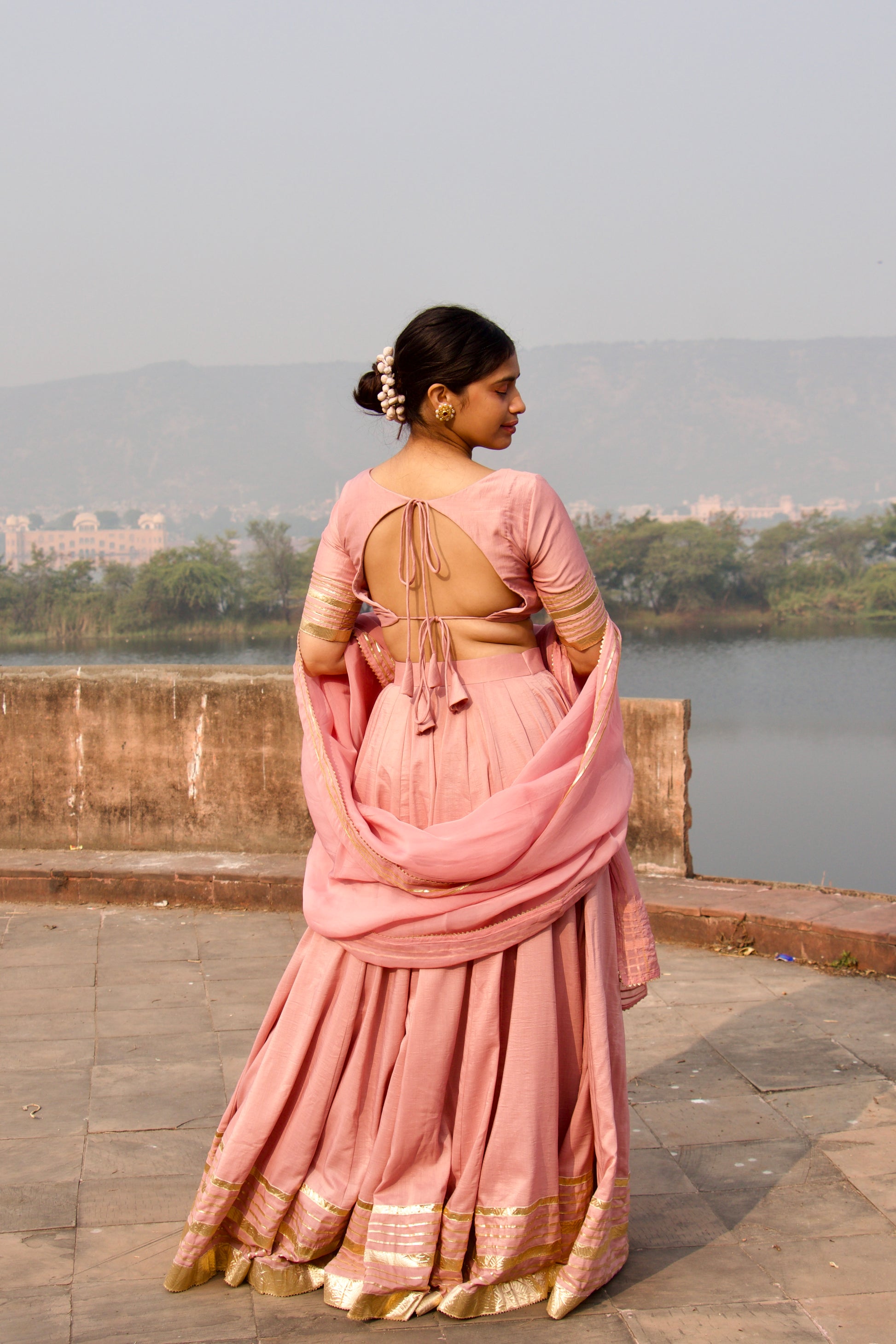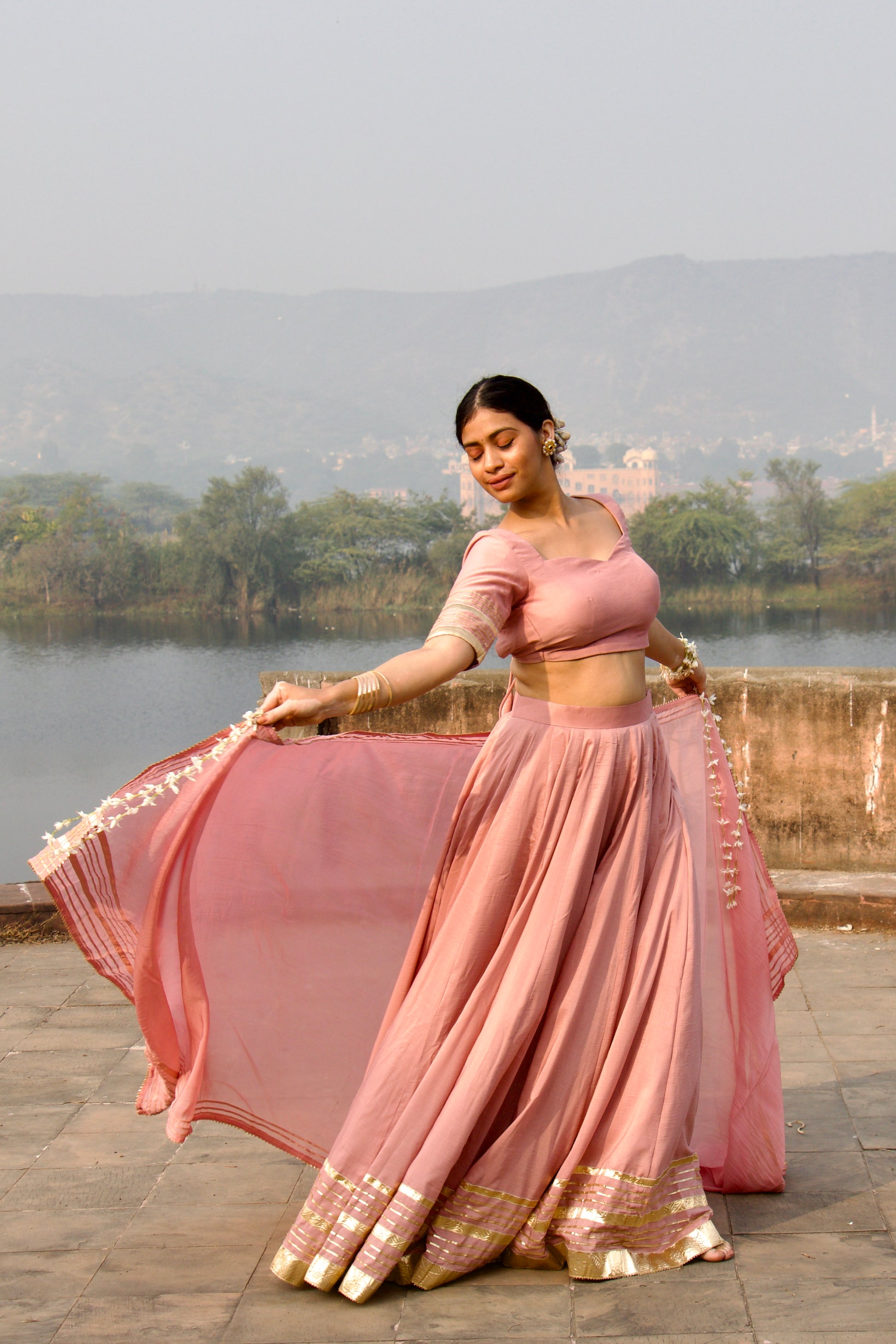 Pink Chandni Muslin Lehenga with Gota Lappa Detailing